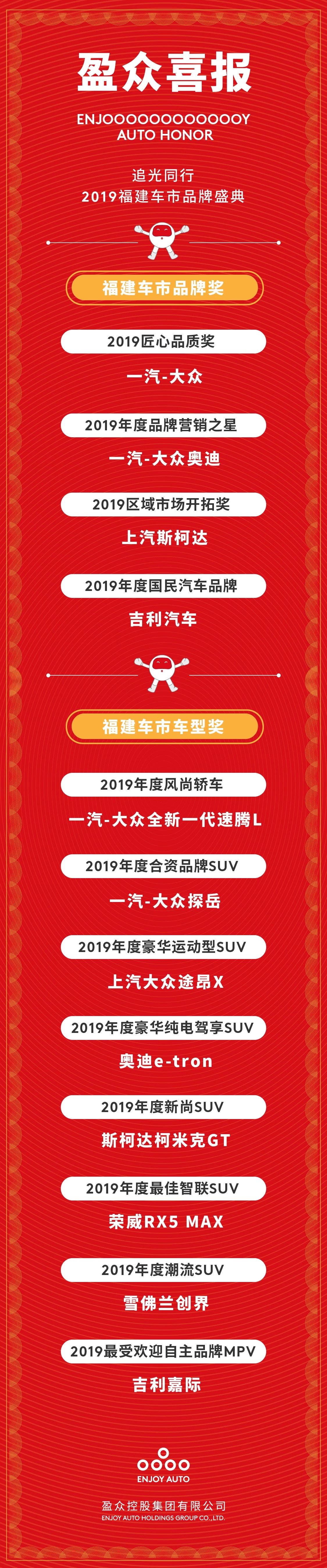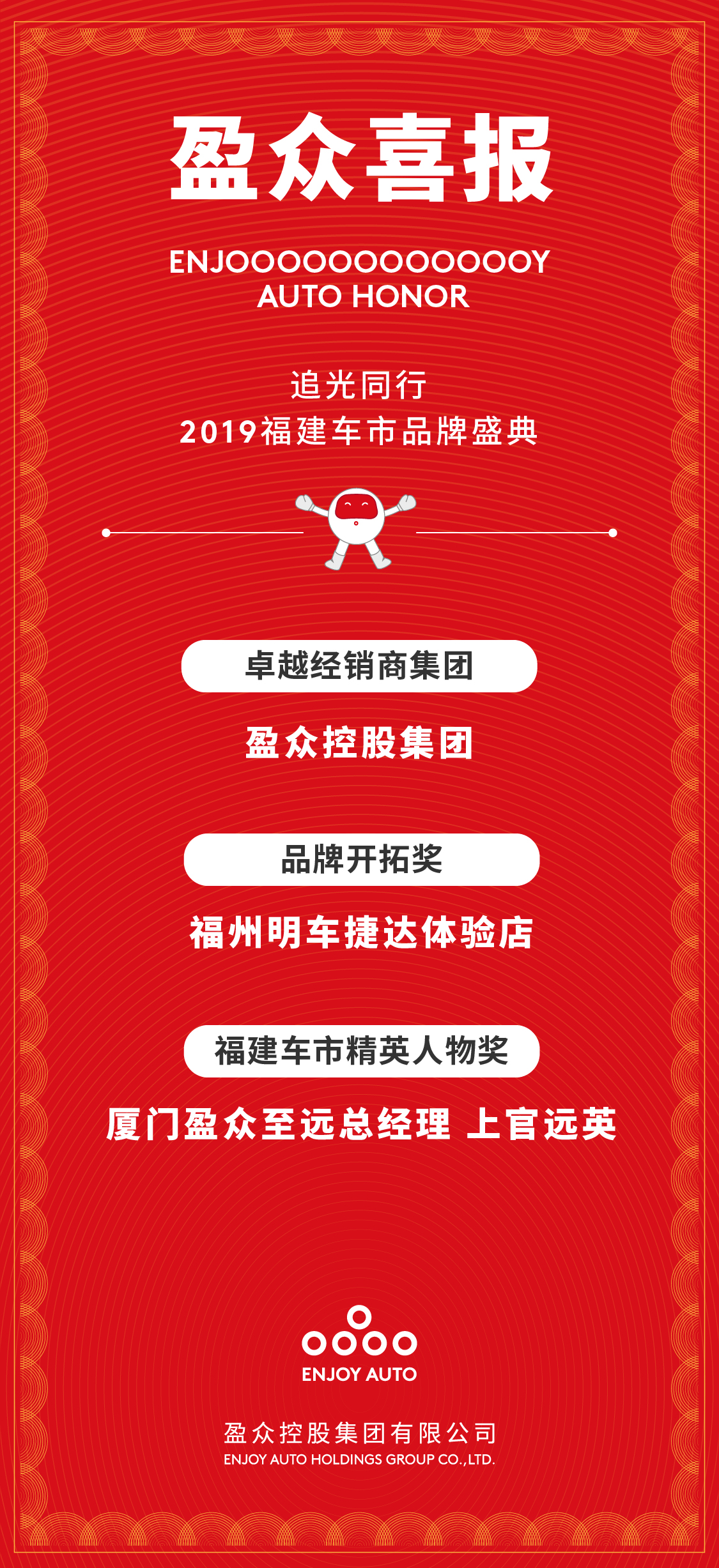 喜訊 | 盈眾榮獲2019福建車市品牌盛典“卓越經銷商集團”等多項大獎