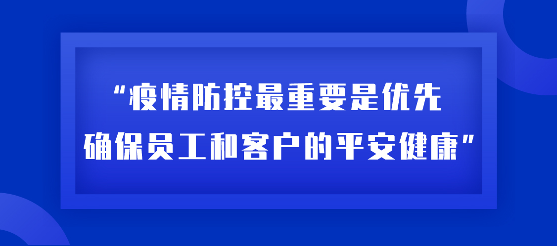 張總多次對工作小組強調:“疫情防控最重要是優先確保員工和客戶的平安健康”。陳主任表示,基層一線是對外服務的窗口,是防控工作重中之重,集團全體同仁多一分擔當,員工的安全就多一分保障,我們的客戶和家人就多一分安康。