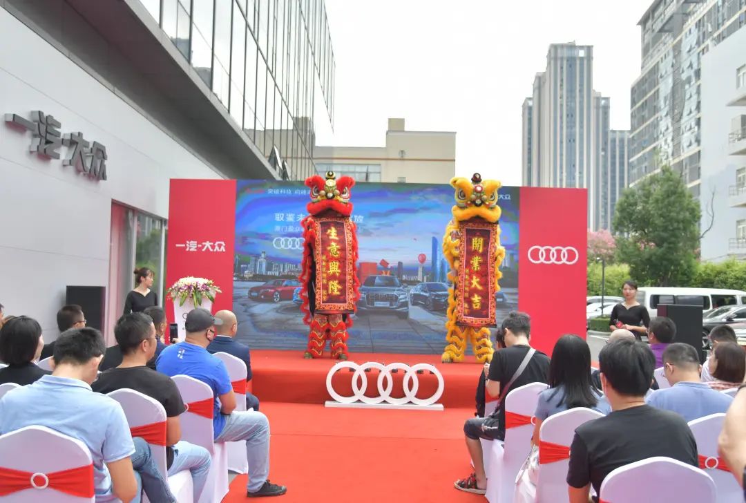 一汽-大眾奧迪銷售事業部東南區區域主管銷售經理葉鵬、一汽-大眾奧迪銷售事業部東南區區域服務與二手車經理包洋、廈門盈眾至遠汽車銷售有限公司總經理嚴勁松等,共同為廈門盈眾奧迪前埔店全新數字化體驗中心剪彩慶賀。精彩紛呈的舞獅表演將現場氣氛推向高潮。