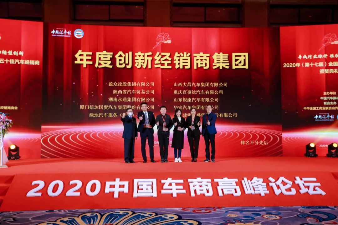 2020年12月27日,中國(guó)汽車報(bào)社與全國(guó)工商聯(lián)汽車經(jīng)銷商商會(huì)共同主辦的“尋找行業(yè)標(biāo)桿 推動(dòng)轉(zhuǎn)型創(chuàng)新” 2020年(第十七屆)全國(guó)“五十佳汽車經(jīng)銷商”頒獎(jiǎng)活動(dòng)在北京舉辦,同期還舉辦了以“把握新階段 共創(chuàng)新未來(lái)”為主題的2020中國(guó)車商高峰論壇。