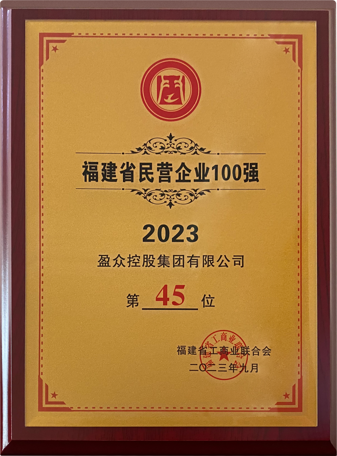 ▲盈眾控股集團(tuán)位列2023福建省民營企業(yè)100強(qiáng)第45位