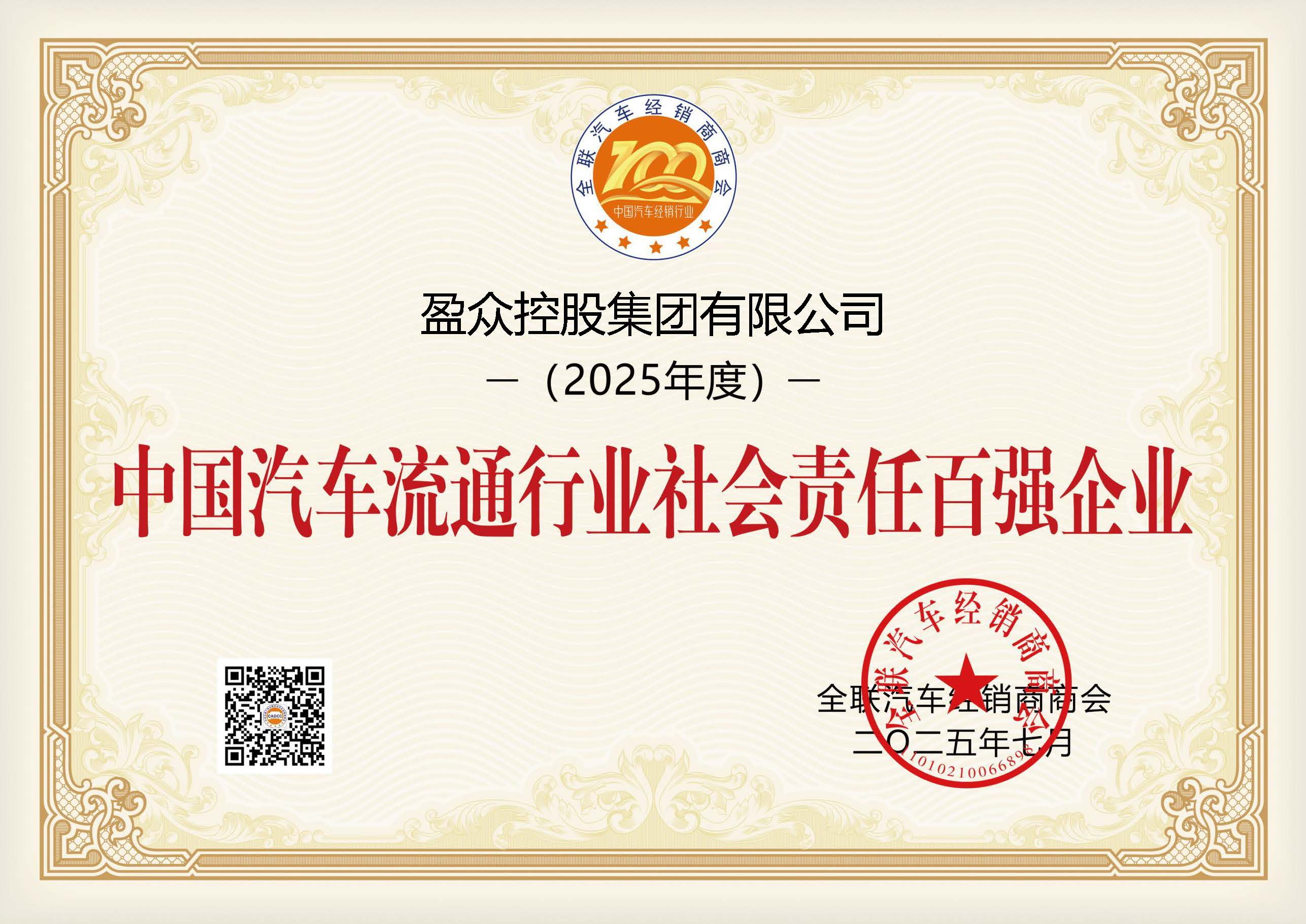 同時,盈眾控股集團還入選“中國汽車流通行業社會責任百強企業”和“中國新能源汽車銷售百強榜”等榮譽,不僅彰顯了盈眾在汽車流通行業中的競爭力,也是對其品牌影響力的高度認可。